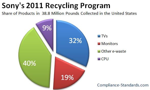 In the case of Sony, our best assessment is that its 2011 recycling programs collected 38.8 million pounds of electronics. Most of the volume or just over 30 million pounds originated from indirect customer channels, essentially retailers. The remaining 8.8 million pounds came from direct channels.