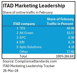 In the competitive landscape, we note TES taking over the leadership rank of first promoter of ITAD, on the basis of the volume of traffic, pulling in more than 41K visitors in the month of February. However, despite traffic leadership giving it a 48.86% share of the market, TES’ traffic fell 54% from January.