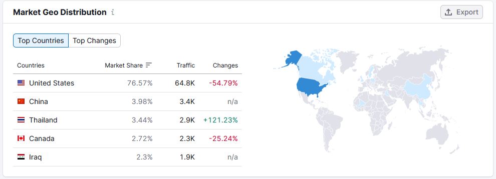 By geography, we note the dominance of the Unites States as a source of traffic, accounting for 76.57% of all traffic to the 18 ITAD companies analyzed. The predominance of the US is normal in this context, since the majority of analyzed firms are US-based. We do note also a substantial reduction of traffic from the US, and a triple-digit increase from Thailand, albeit off of a small traffic of less than 3K.